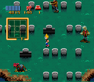Algunos de ellos serán pócimas que nos volverán monstruos invencibles durante un tiempo o payasos hinchables para distraer nuestros enemigos.Pero aunque dispongamos de todas estas armas y power-up. ¿Cómo lo haremos para localizar a los susodichos vecinos? Muy fácil, también dispondremos de un radar que nos señalara donde están los vecinos más cercanos y cuantos quedan por rescatar. Habremos de ir con cuidado puesto que si mueren todos los vecinos, perderemos la partida.